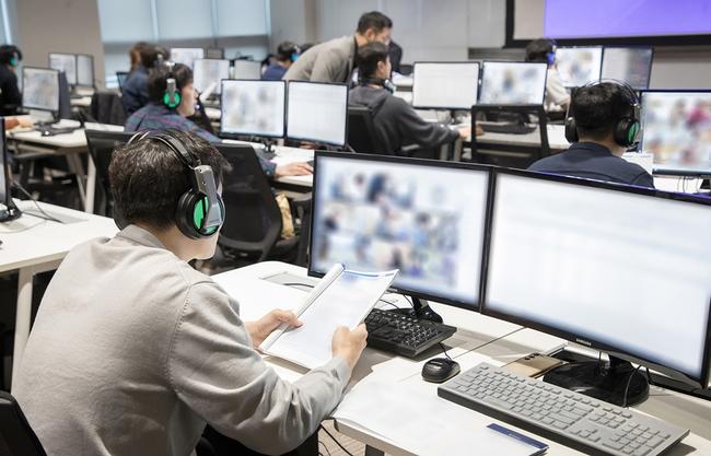 지난 4월 20일 경기도 용인에 위치한 삼성전자 인재개발원에서 삼성전자 감독관들이 GSAT 응시자들을 대상으로 예비 소집을 진행하고 있는 모습