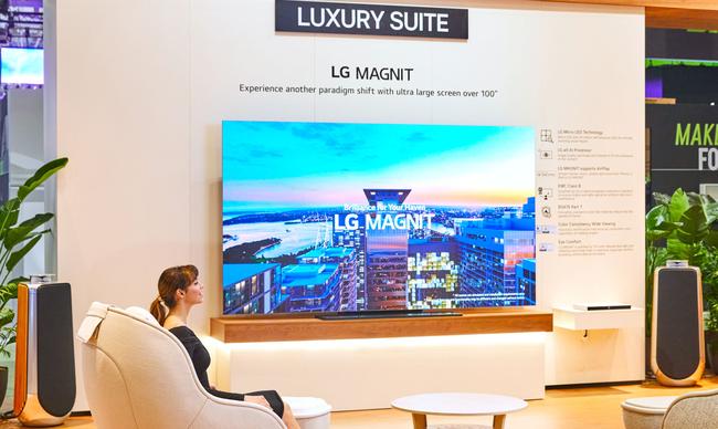 LG전자가 올 초 바르셀로나에서 열린 ISE 2024에서 선보인 홈시네마용 마이크로 LED `LG 매그니트(MAGNIT)`.