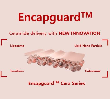 이번에 엔캡가드 기술을 적용해 새롭게 선보인 전달체 엔캡가드세라-에스와 엔캡가드세라-엘엔피5는 피부에서 수분을 유지하고 방어막 역할을 하는 세라마이드를 주성분으로 한다.