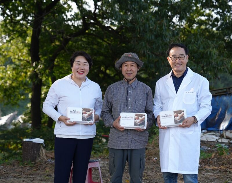(사진)좌측부터 더미르라이프 김숙이 대표, 카르베 양계장 김기영 대표, 미르존몰약연구소 김진우 박사