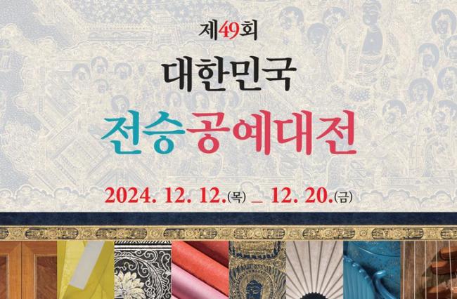 국가유산청과 국가무형유산기능협회는 전통공예의 계승과 발전을 위한 공모전인 `제49회 대한민국전승공예대전`을 12월 12일부터 20일까지 국가무형유산전수교육관(서울 강남구)에서 개최한다.