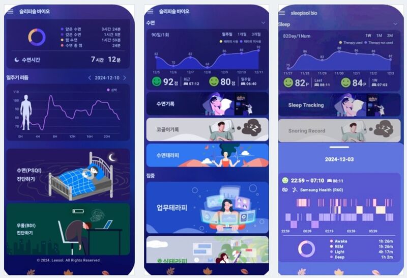 리솔 권구성 공동대표는 “슬리피솔 바이오는 단순한 수면 정보 제공 앱이 아니다. 사용자 친화적인 인터페이스와 지속적인 업데이트를 통해 사용자 편의성을 높이고, 수면 패턴과 생체 리듬을 과학적으로 분석하여 최적의 수면 환경을 조성해 준다. 리솔의 숙면유도 기기인 ‘슬리피솔’은 국내뿐 아니라 일본 등 해외 시장 진출도 적극 추진 중”이라고 밝혔다.
