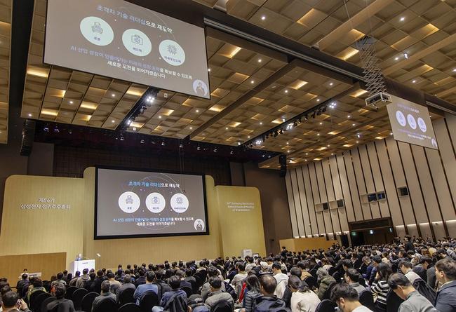 삼성전자는 19일 수원컨벤션센터에서 제56기 정기 주주총회를 열고 지난해 매출 300조 원 돌파 성과를 공유하는 한편, 올해 어려운 경제 여건 속에서도 AI·로봇·메드텍 등 차세대 산업 분야를 적극 공략해 초격차 경쟁력을 확보하겠다고 밝혔다.