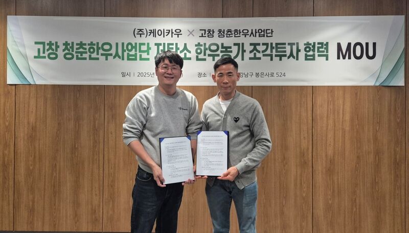 케이카우는 투자자 모집과 플랫폼 운영, 배당 구조 설계 등 사업 전반을 담당하며, 고창 청춘한우사업단은 농가 발굴과 사육 정보 제공 등 현장 지원 역할을 맡는다.