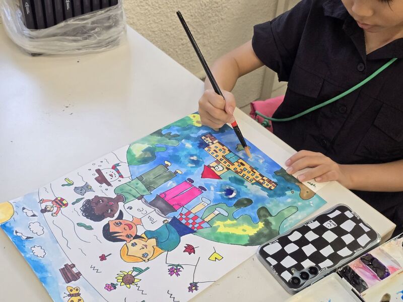6월 1일, 로컬스티치 화곡에서 열린 제7회 평화사랑 그림그리기 국제대회 강서지역 예선대회 현장 모습. 어린이들이 평화를 주제로 한 그림을 정성껏 완성하고 있다.