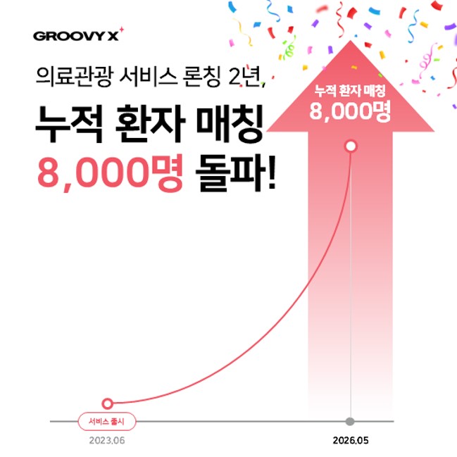 중국통 의료관광 서비스 스타트업 ‘그루비엑스’(GroovyX, 대표 권규범)가 서비스 출시 이후 병원과 의료관광객 간 누적 매칭 8,000건을 돌파했다고 10일 밝혔다. 의료관광 산업에서 2년 만에 이룬 성과로는 이례적인 기록이다.