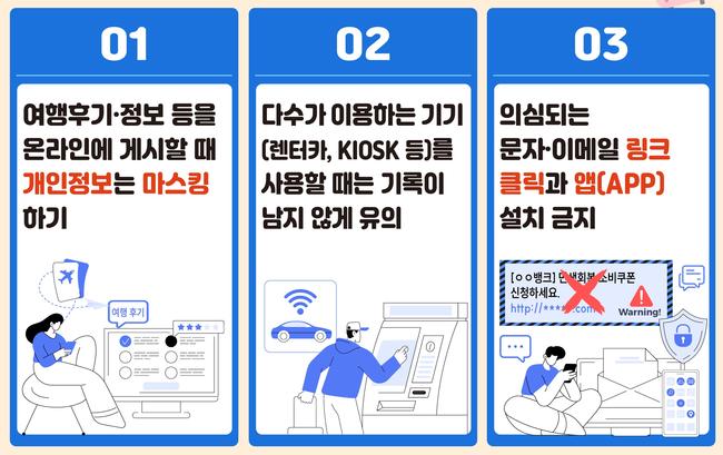 개인정보위는 휴가철 이용객을 대상으로 다음과 같은 ‘3대 개인정보 안전 수칙’을 발표하고, 생활 속 실천을 당부했다.