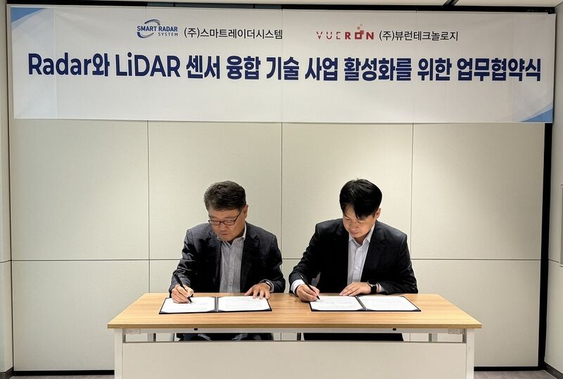 AI 기반의 라이다(LiDAR) 인지 솔루션 전문기업 뷰런테크놀로지(Vueron Technology, 대표 김재광)는 4D 이미징 레이더 전문기업 스마트레이더시스템(코스닥 상장사:424960, 대표 김용환)과 센서퓨전 공동 연구개발 및 사업 협력을 위한 업무협약(MOU)을 체결했다고 29일 밝혔다.