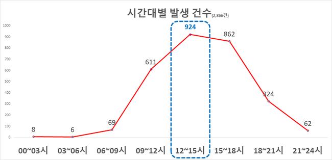 발생 시간대는 정오~오후 3시 32.2%(924명), 오후 3시~6시 30.0%(862명)로, 이 시간대 환자가 전체의 62.3%를 차지했다. 소방청은 “한낮 야외 활동과 고온 노출이 주요 위험 요인”이라고 분석했다.