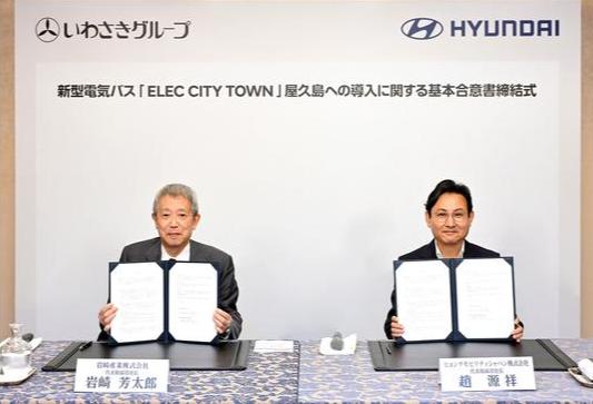 이와사키 요시타로 사장은 체결식 인사말에서 “현재 일본에는 중국산 전기버스도 판매가 되고 있지만, 무엇보다 품질 신뢰도가 높은 현대자동차의 전기버스를 선택하게 됐다”며 “향후 야쿠시마에서 운행하는 차량을 모두 EV로 교체할 계획”이라고 밝혔다.