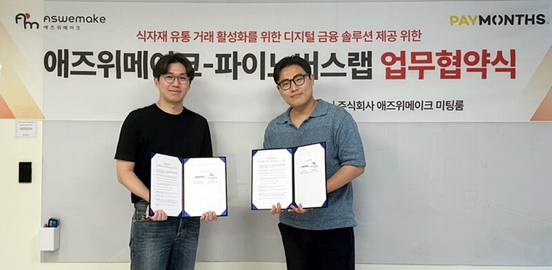 식자재마트 디지털 전환(Digital Transformation) 통합 관리 솔루션 ‘큐마켓’ 운영하는 애즈위메이크가 식자재 유통거래 활성화를 위한 디지털 금융솔루션 제공을 위해 파이노버스랩과 업무협약을 맺었다고 31일 밝혔다.