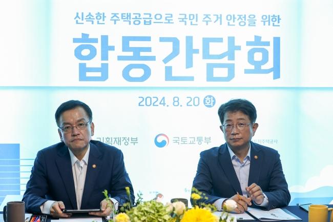 최상목 부총리 겸 기획재정부 장관은 20일 오후, 박상우 국토교통부 장관, 이한준 한국토지주택공사 사장 등과 함께, LH 신축매입임대 및 부천대장 3기 신도시 건설 현장을 방문하여 `주택공급 확대방안`을 속도감 있게 추진하기 위한 조치사항 등을 논의, 점검했다.
